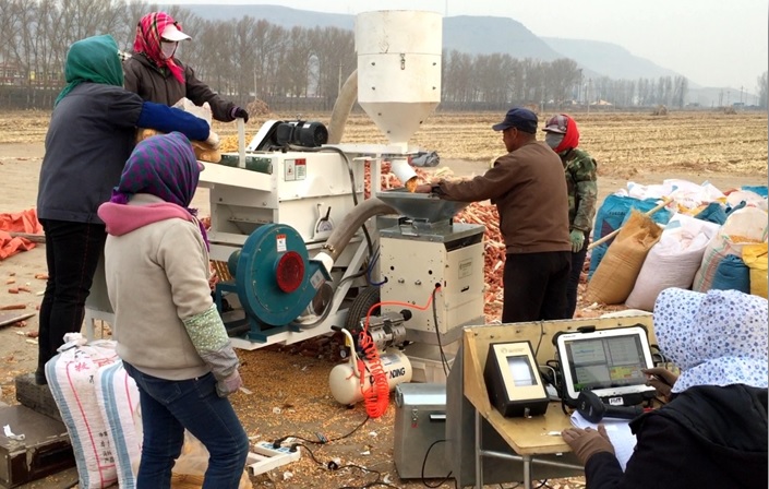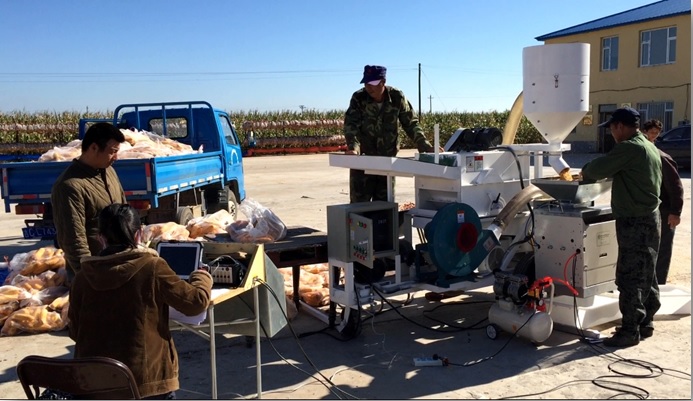 小區(qū)脫粒機(jī)配合測產(chǎn)系統(tǒng)測產(chǎn)現(xiàn)場